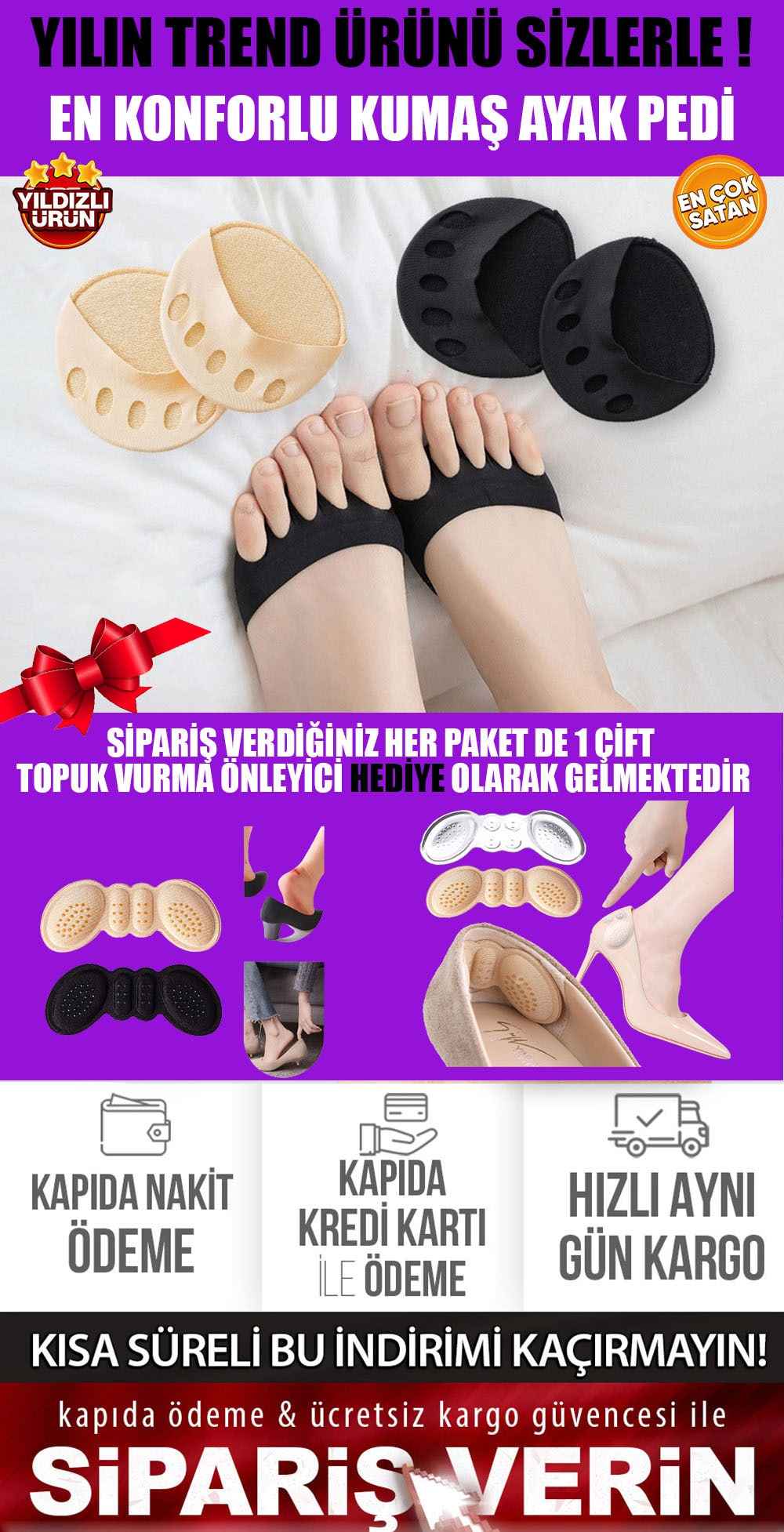 1 ÇİFT PAMUKLU AYAK PEDİ + 1 ÇİFT TOPUK VURMA ÖNLEYİCİ HEDİYE -